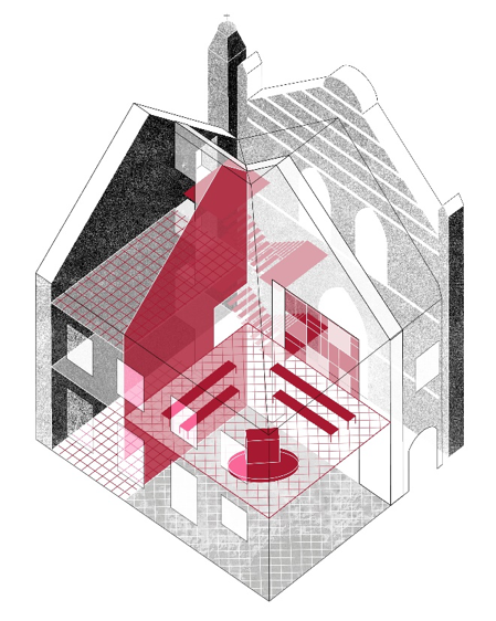 The substantial decline in participants in the Catholic service in Flanders means that the use, management and maintenance of parish churches are ever more difficult. The integration of a new, secular use is often proposed as a solution to the problem of obsolete church buildings. This integration can be through shared use, which means that the church is still used for religious services with a secular function available through a spatial division in the church interior, or by planning activities at different times. There can also be an adaptive reuse of the church for an entirely new programme. In this case, ‘deconsecration’ (official removal of its religious function) and a change of ownership is considered as a logical consequence.