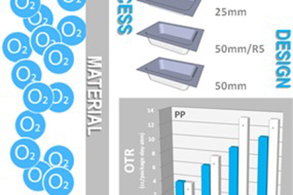 During thermoforming, plastic sheets are heated and subsequently deformed through the application of mechanical stretching and/or pressure. This process directly impacts sheet properties such as material thickness in walls, corners, and bottom, crystallinity in the constituent layers, and particularly the oxygen gas permeability.