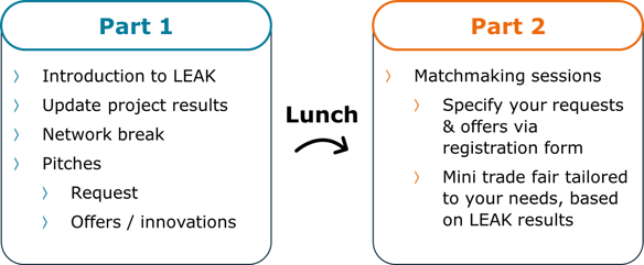 Aangezien dit event gefaciliteerd wordt door het LEAK consortium met elk hun expertises en breed netwerk, biedt dit een mooie kans om op één dag met verschillende internationale partners in contact te komen en zo uw business en netwerk uit te breiden.