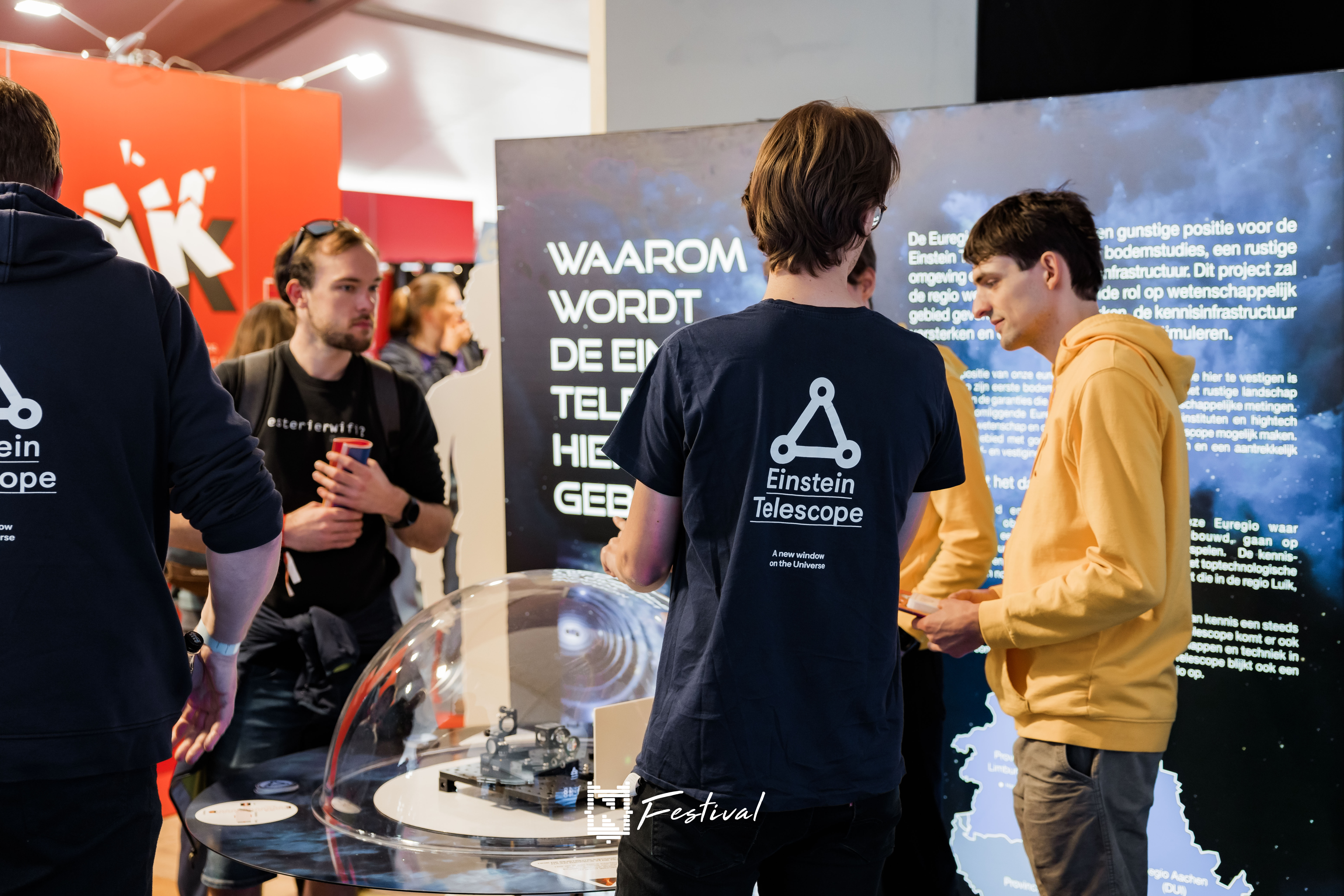 Aan dat diverse publiek werd ook de Einstein Telescope voorgesteld. Via een VR-simulatie, quiz en interactieve schermen konden bezoekers meer te weten komen over zwarte gaten, de werking en constructie van de telescoop, én konden ze op de foto met Albert Einstein. Plaats van het gebeuren was sector 42, één van de nieuwe belevingszones van deze Nerdland-editie. UHasselt is één van de trotse partners van de Einstein Telescope. Dr. Loth Van der Auwermeulen is als juridisch experte nauw betrokken bij het project.
