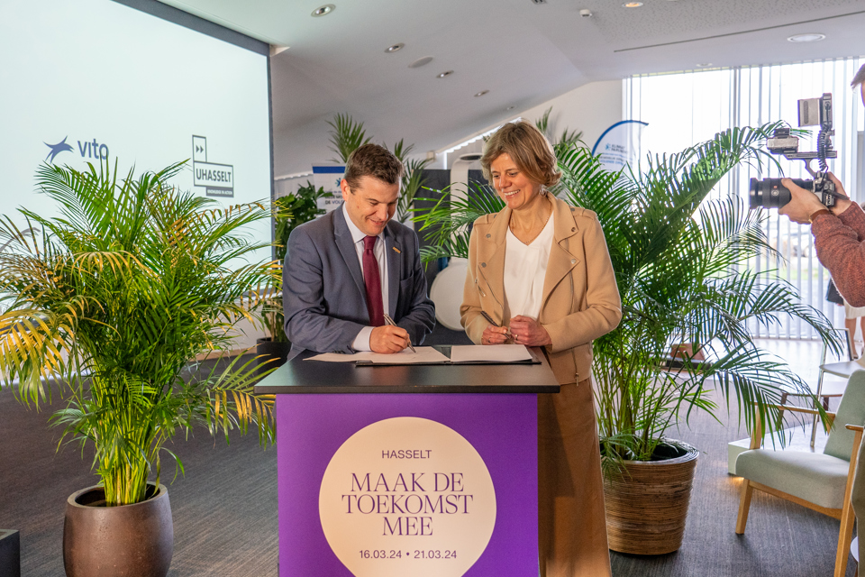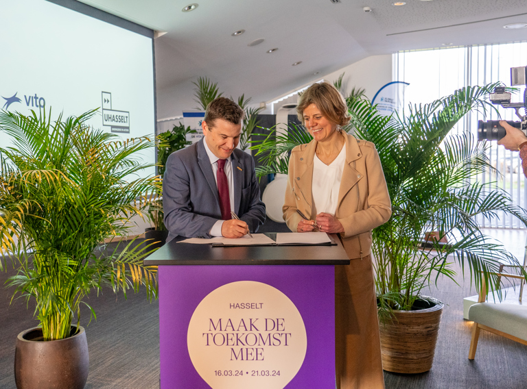 De ondertekening van de raamovereenkomst gebeurde tijdens het Flanders Technology & Innovation (FTI) in Hasselt. Zowel VITO als UHasselt zijn partner van dit evenement waar technologie en innovatie centraal staat als motor van duurzame welvaart.