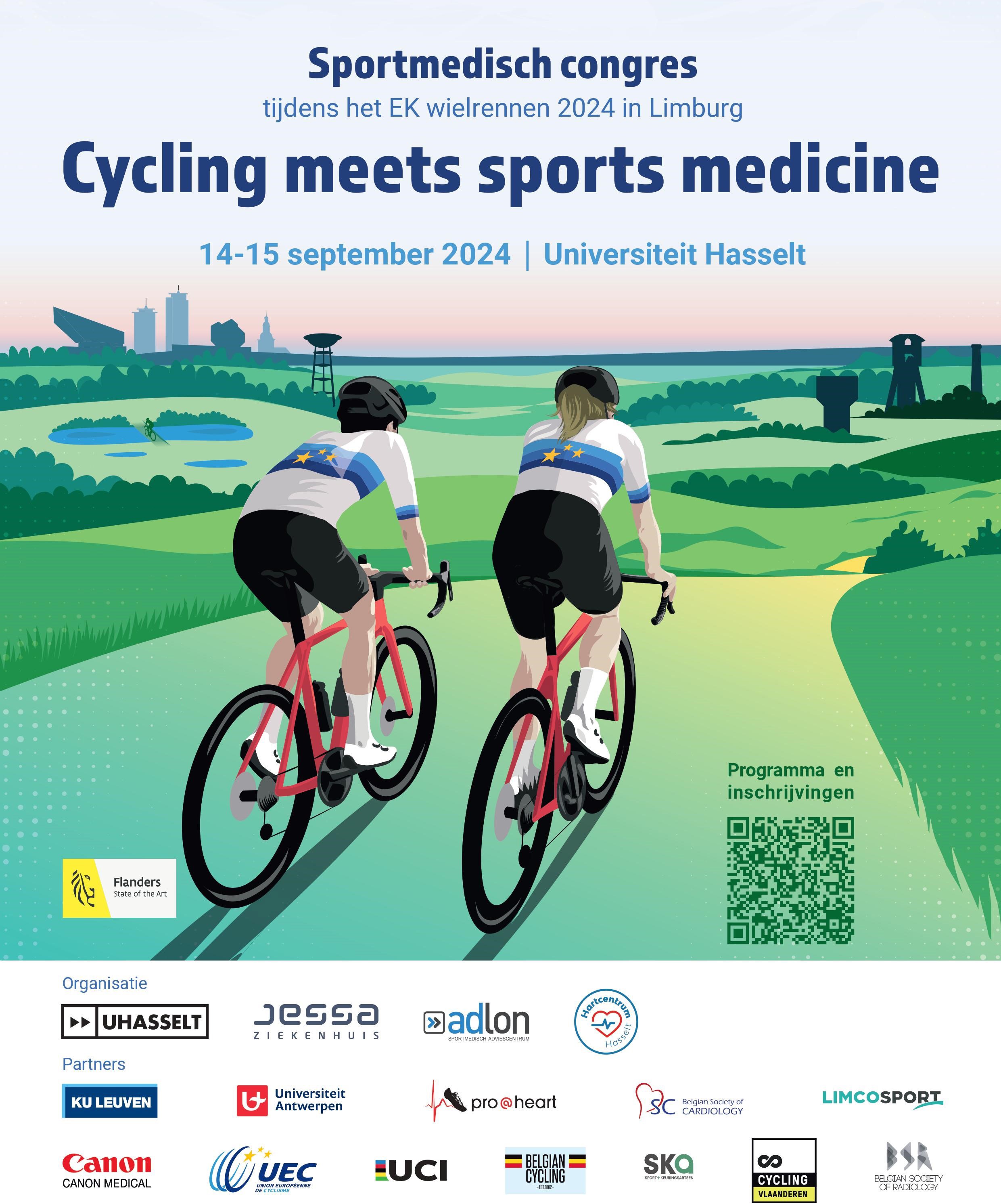 Op 14 en 15 september organiseren Universiteit Hasselt en Jessa Ziekenhuis tijdens het EK Wielrennen in Limburg een groot sportmedisch congres over de nieuwste sportmedische inzichten en expertises in het wielrennen. “Van hoe je een sterk trainingsschema opstelt en de rol van voedingsgels en sportdranken tot het nut van hartscreenings bij sporters. Een breed sportmedisch congres voor zowel artsen en kinesitherapeuten maar ook voor iedereen met een hart voor het wielrennen”, zeggen organisatoren prof. dr. Bert Op ’t Eijnde, prof. dr. Guido Claessen en dr. Olivier Ghekiere.