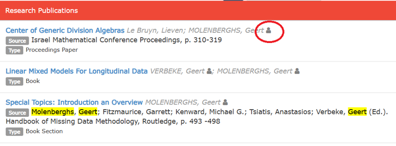 - Je komt nu op je researcher profile uit. Selecteer onder de rubriek Publicaties de optie FWO.